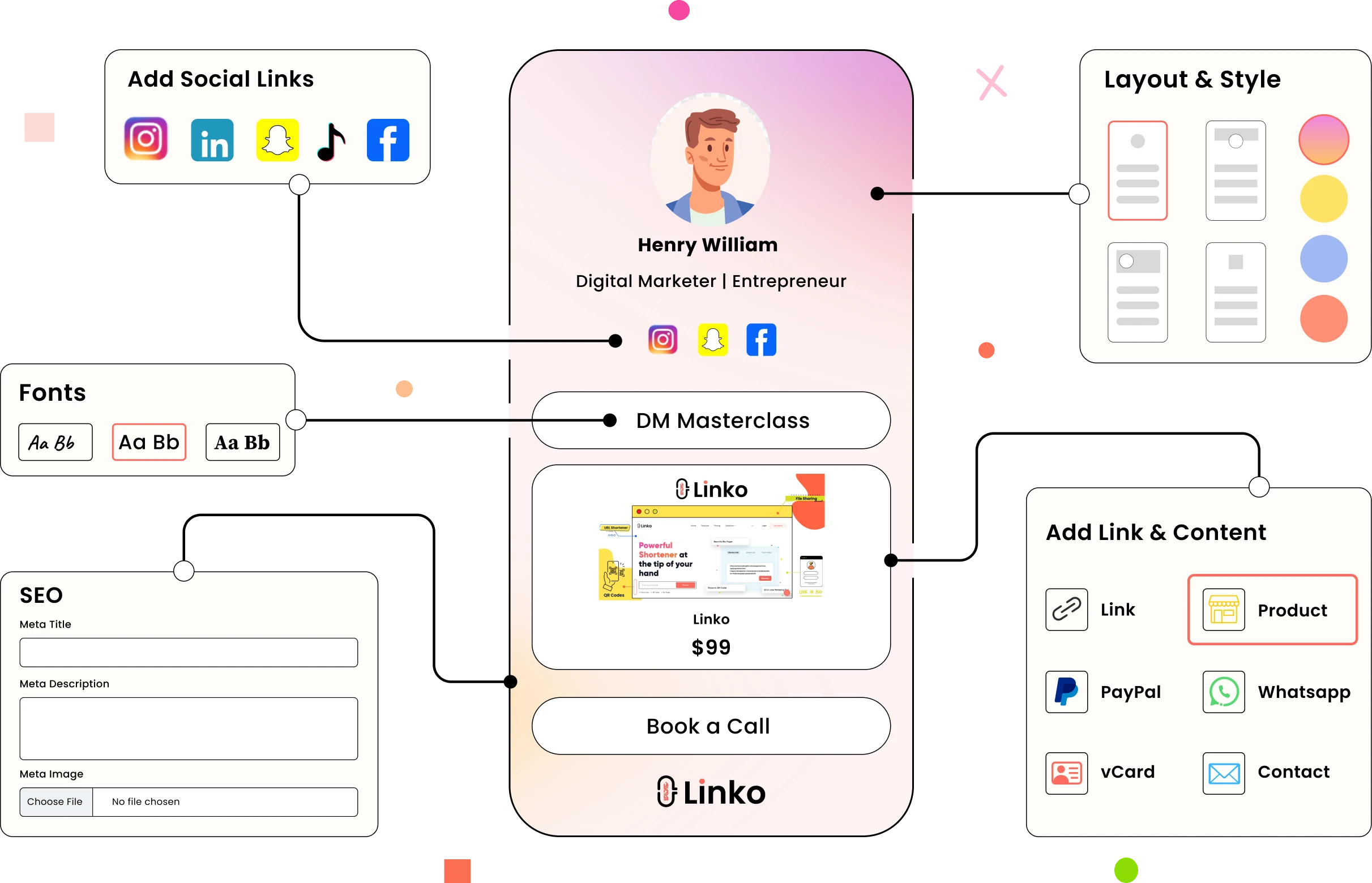 - Manage bio pages, QR code, deep linking, and UTM tags all within one platform.